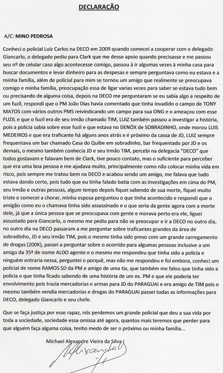 A Revista Quidnovi recebeu de Michael Alexandre Vieira da Silva (foto), a testemunha da Operação Shaolin que denunciou o governador do DF Agnelo Queiroz, documentos que fazem parte do processo que tramita na 10ª Vara Federal, nas mãos da juíza Pollyana Kelly. A juíza é aquela que deu prazo de 30 dias para que o presidente Luiz Inácio Lula da Silva se pronunciasse sobre a questão do Mensalão do PT.